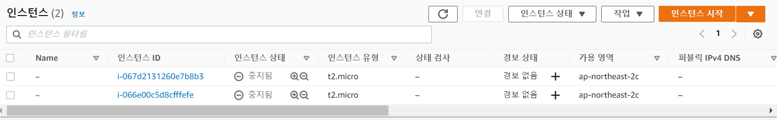 EC2 > 인스턴스 창에서 '인스턴스 시작' 클릭